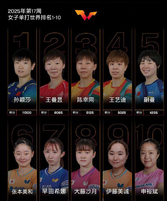 除了这些之外,值得一提的是国乒女队依旧非常亮眼,世界女乒前五的名次终究是被中国女队包揽。